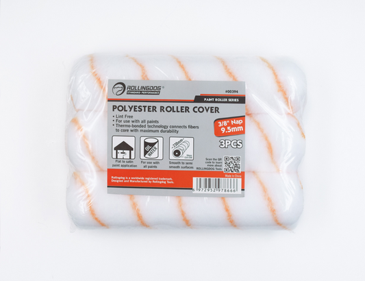 9" x 3/8" Nap Polyester Roller Covers – 3-Pack for Semi-Smooth to Semi-Rough Surfaces