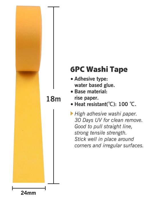 6 PC Washi Masking Tape – Clean Removal, UV Protection, Heat Resistant
