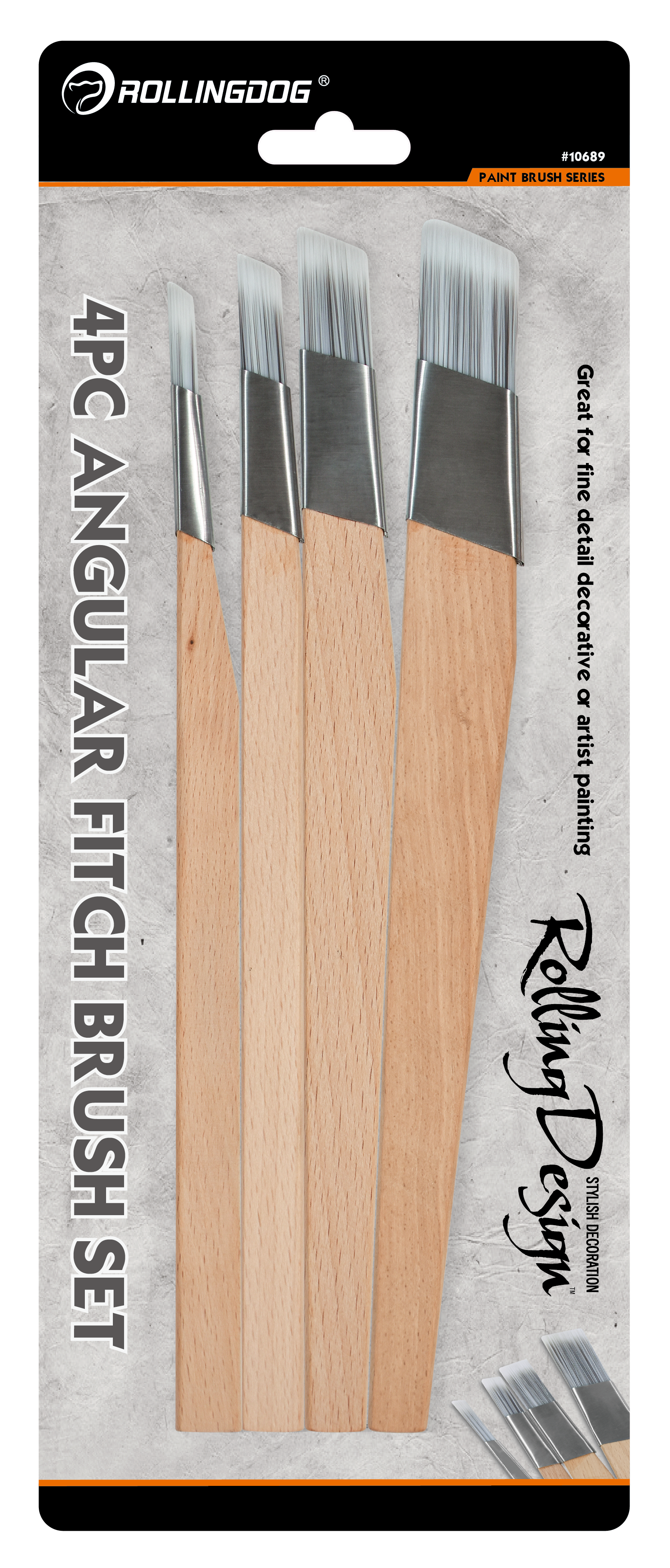 The ROLLINGDOG ROLLING DESIGN 4PC Angular Fitch Brush Set is designed for precise cut-ins, fine detail work, and controlled edge painting. This set includes four angular fitch brushes in 6mm, 12mm, 18mm, and 25mm, making it easy to handle everything from delicate detail lines to broader trim work. Built with solid round tapered (SRT) synthetic filament, stainless steel ferrules, and beech wood handles, these brushes perform best with latex paint and deliver clean, consistent results.