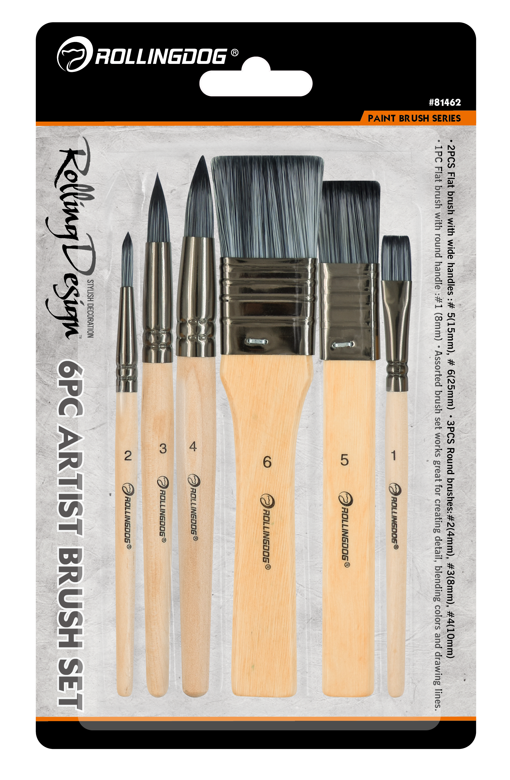 The ROLLINGDOG ROLLING DESIGN 6PC Artist Brush Set is a versatile painting kit designed for artists, hobbyists, and DIY users working with acrylic, watercolor, and gouache paints. This assorted set includes flat and round brushes in multiple sizes, making it ideal for detailed work, blending colors, and drawing clean lines. Built with high-quality synthetic filament, durable nickel-plated ferrules, and wood handles, these brushes deliver consistent performance and long-lasting reliability.