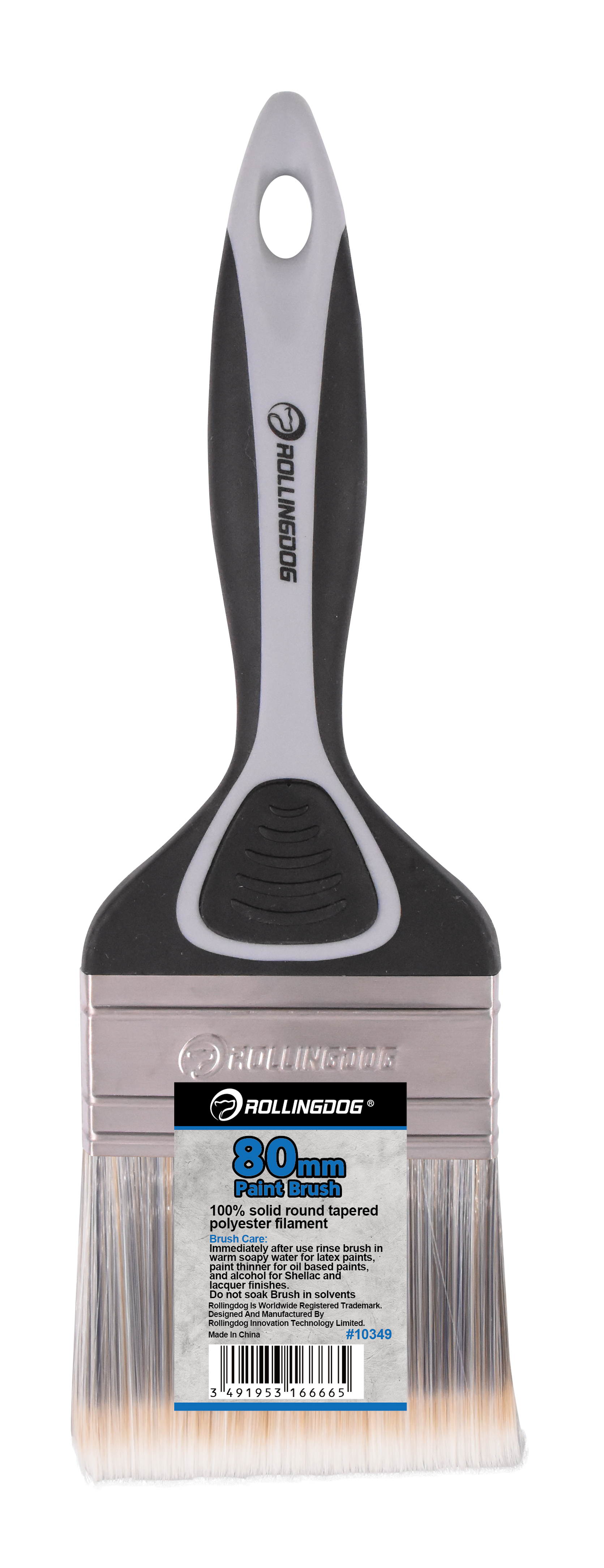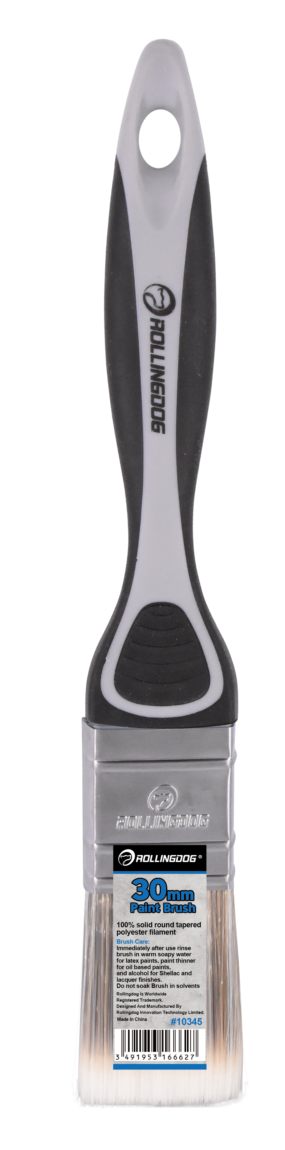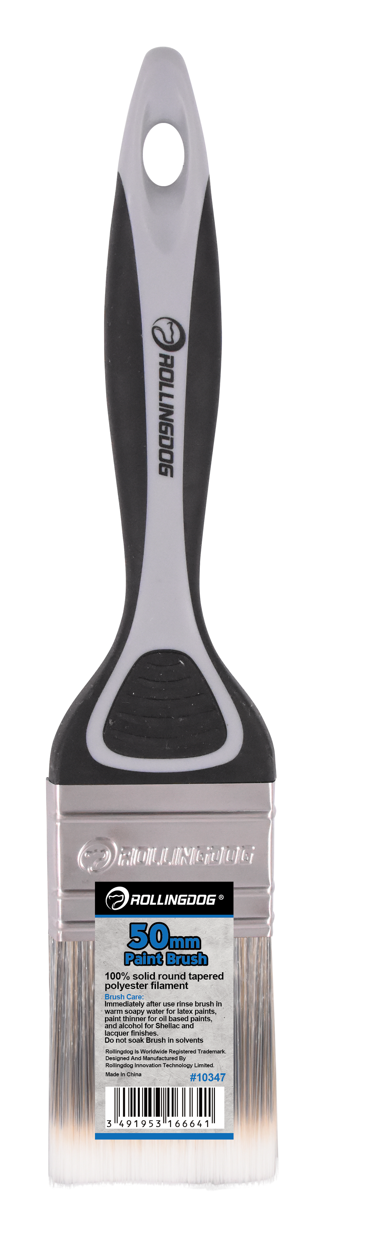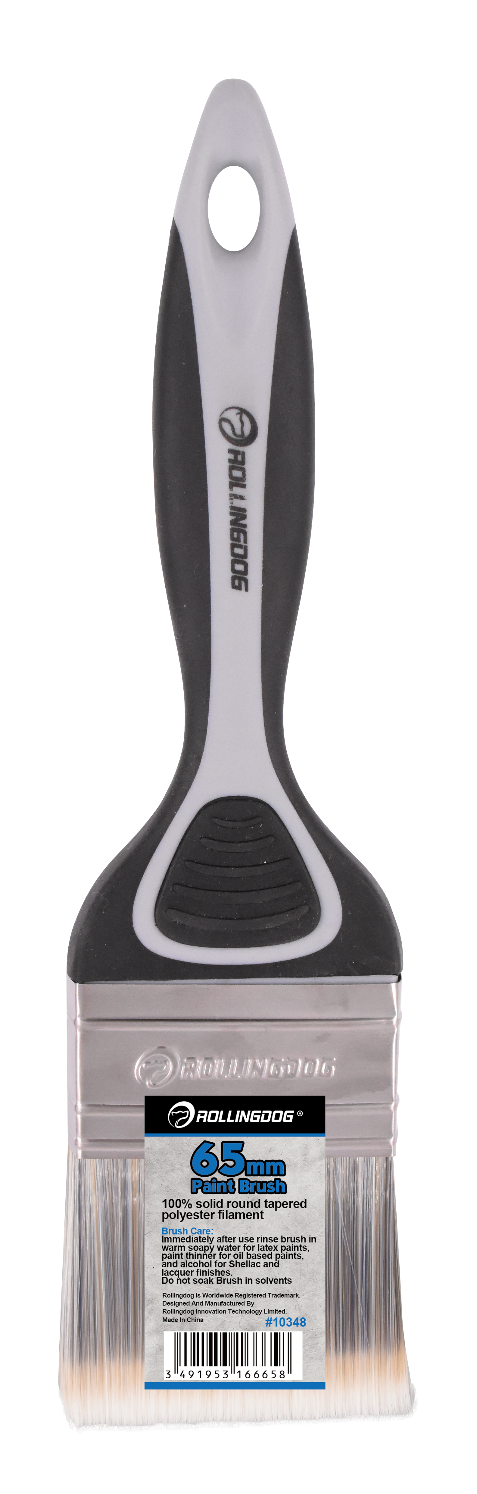 The ROLLINGDOG Paint Brush is designed for smooth, controlled application on trim, walls, and detailed surfaces. Available in sizes from 12mm to 100mm, each brush features 100% solid round tapered polyester filament for consistent paint pickup and clean release. A durable stainless steel ferrule keeps bristles secure, while the soft rubber grip handle (PP + TPE) provides comfort and control—especially during long painting sessions. Ideal for professionals and DIY projects, and works best with latex paint.