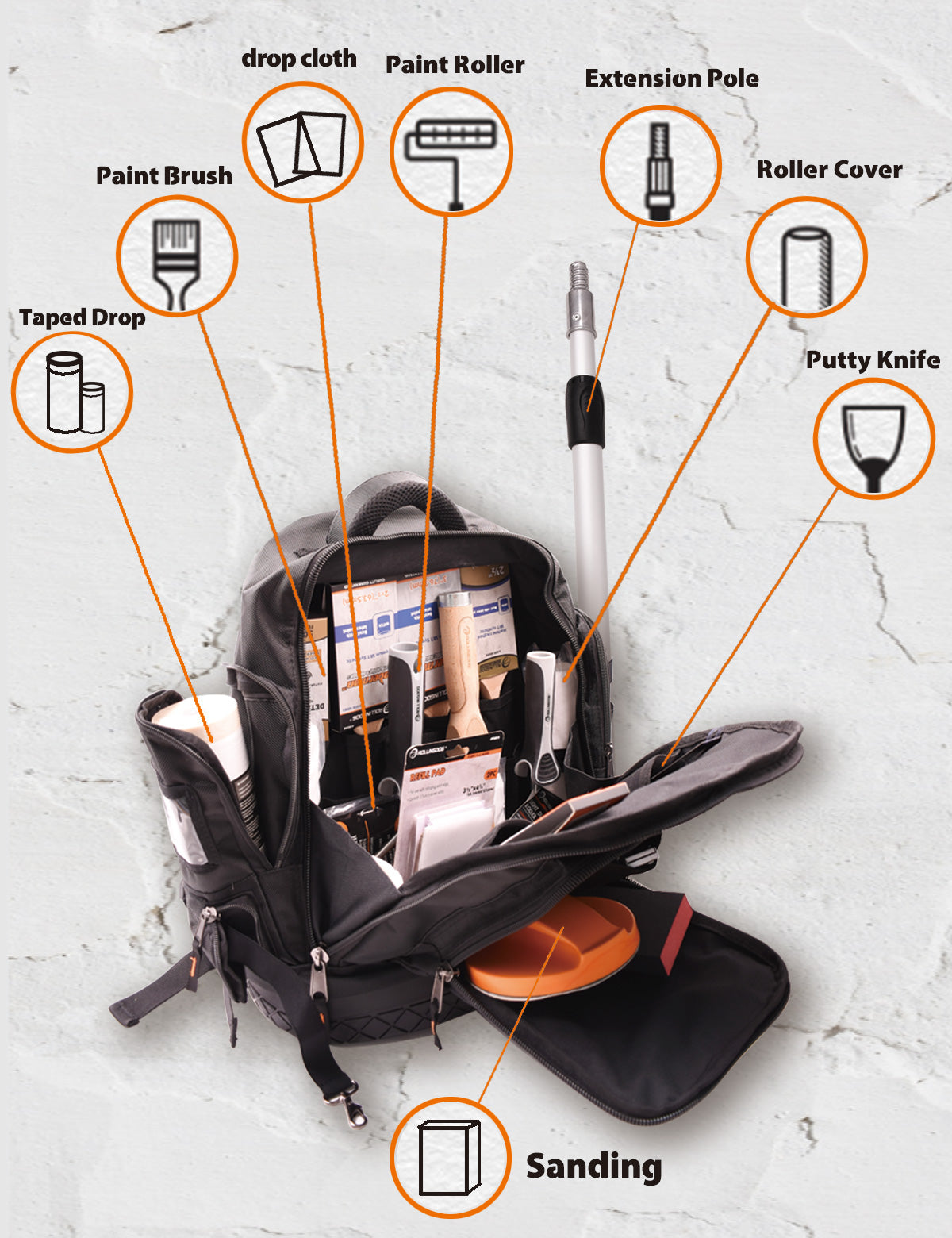 Esta mochila está diseñada para satisfacer las necesidades reales de los pintores: mantiene todo lo necesario al alcance y protege sus herramientas de daños. Olvídese de buscar pinceles extraviados o fundas de rodillos enredadas. Manténgase organizado, eficiente y listo para cualquier reto de pintura.