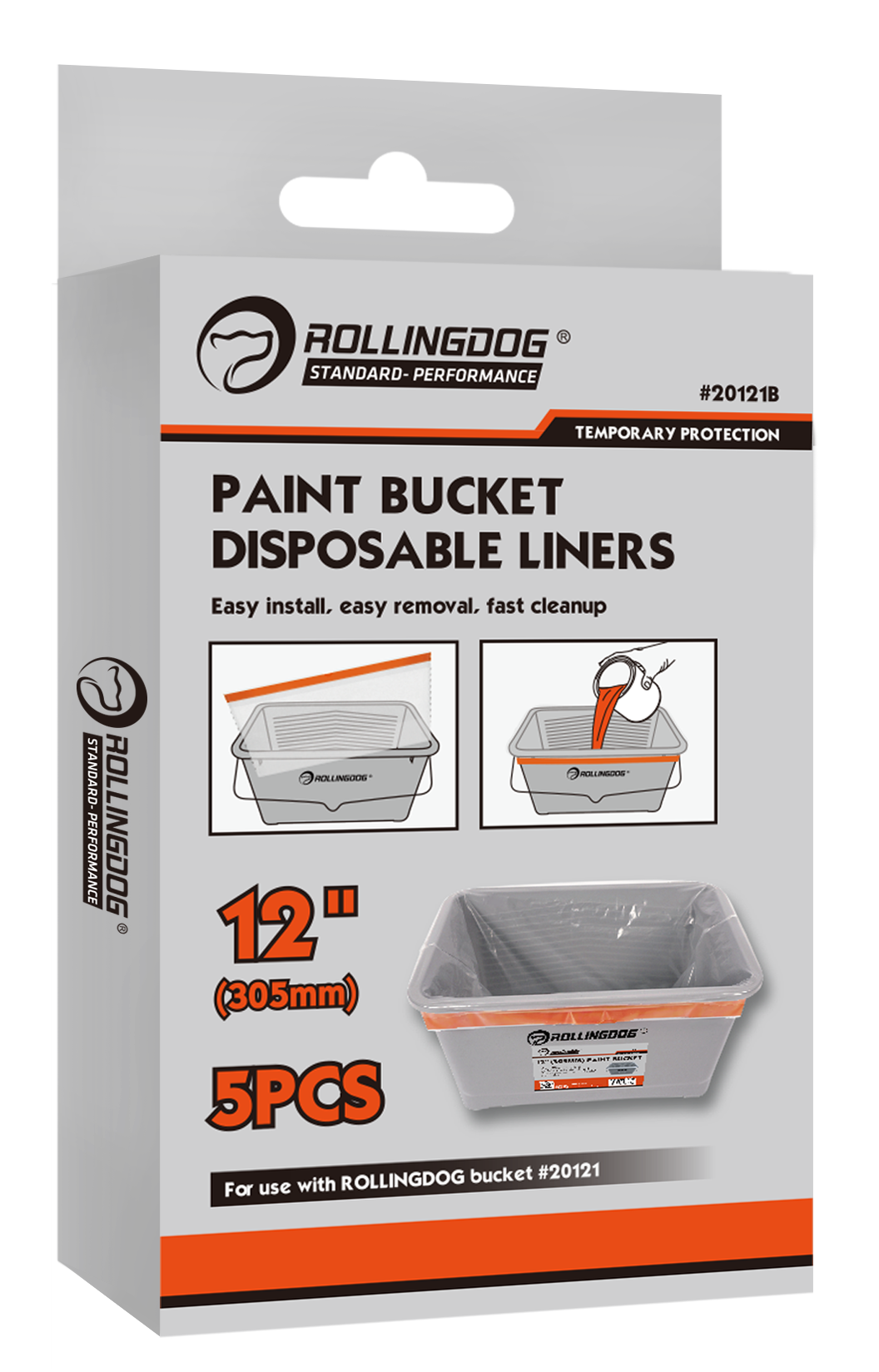 Sized for 12" (305mm) paint buckets, these liners are specifically designed for use with ROLLINGDOG bucket #20121, making them a convenient solution for color changes, reduced cleanup time, and cleaner job sites.