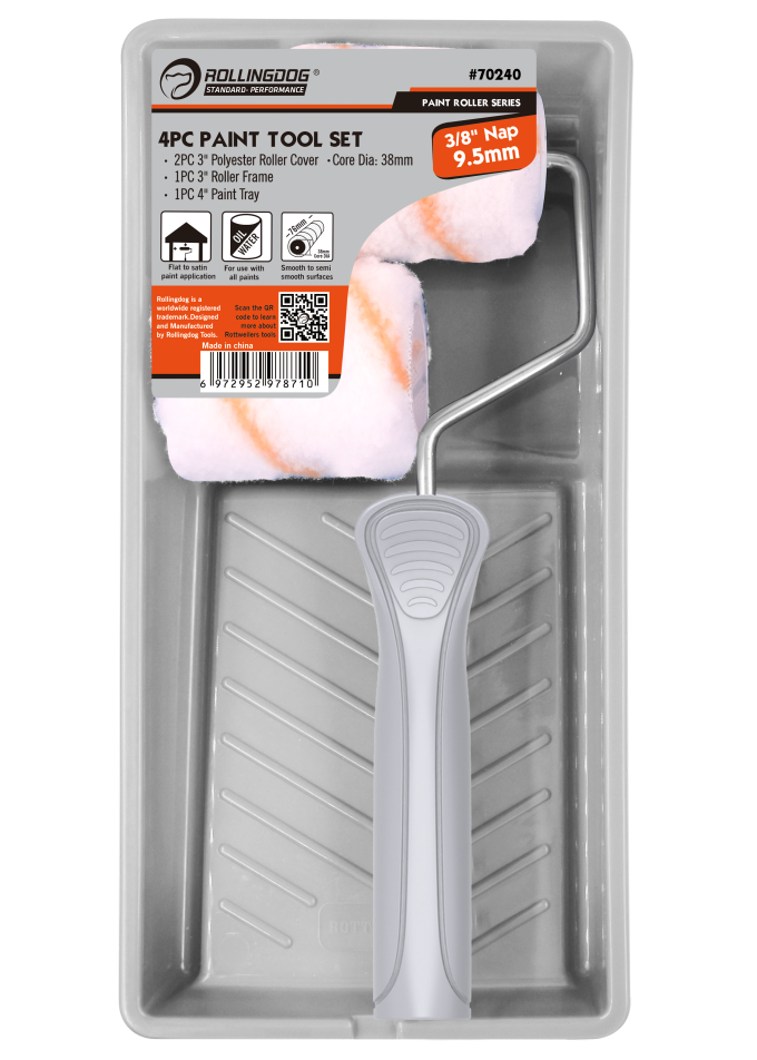 The ROLLINGDOG 4-Piece Mini Paint Roller Set is a compact, professional-grade painting kit designed for smooth, controlled application on small surfaces and detailed areas. Featuring 3″ polyester mini roller covers, this set delivers reliable paint pickup and even release across a wide range of coatings.