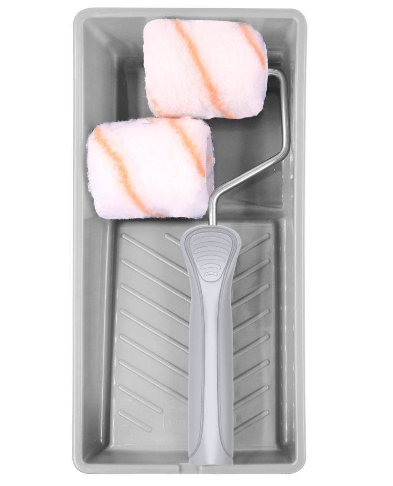 Includes 3″ polyester mini roller covers, mini roller frame, and paint tray for immediate use.