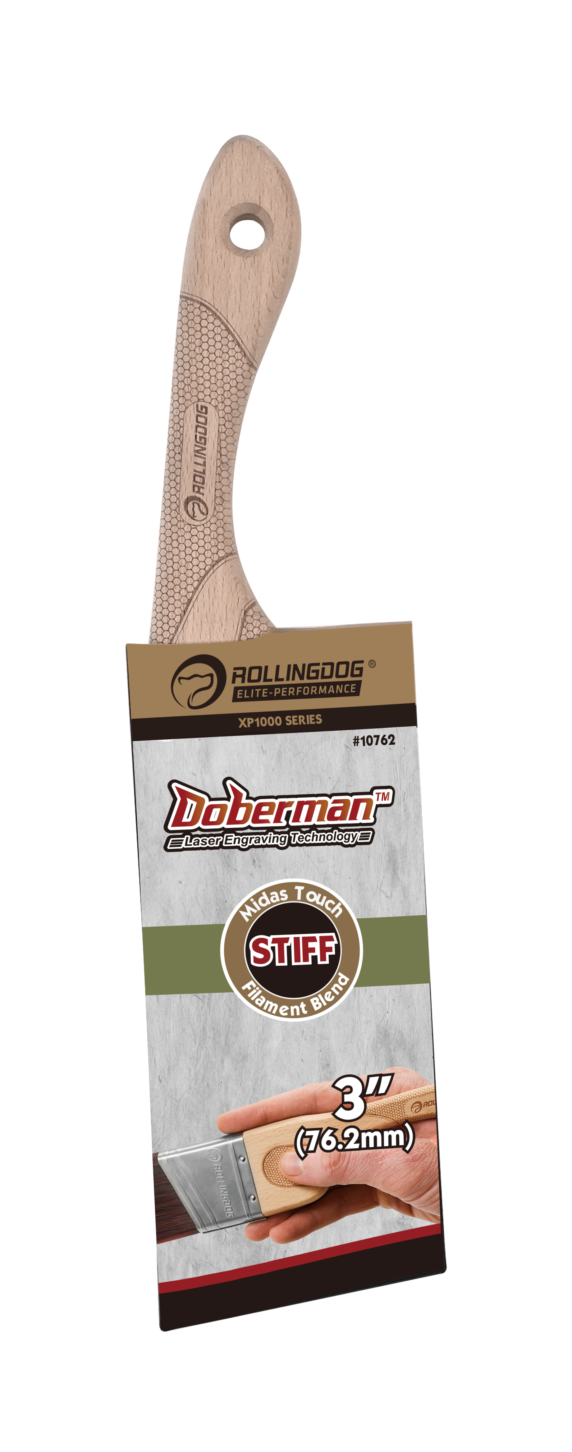 The ROLLINGDOG DOBERMAN™ XP1000 Stiff Filament Angular Paint Brushes are professional-grade tools engineered for crisp cutting-in, sharp edge definition, and controlled paint application. Built with stiff synthetic filament and a durable stainless steel ferrule, these angled brushes provide firm resistance and precise paint placement—ideal for projects where clean lines and accuracy matter most.