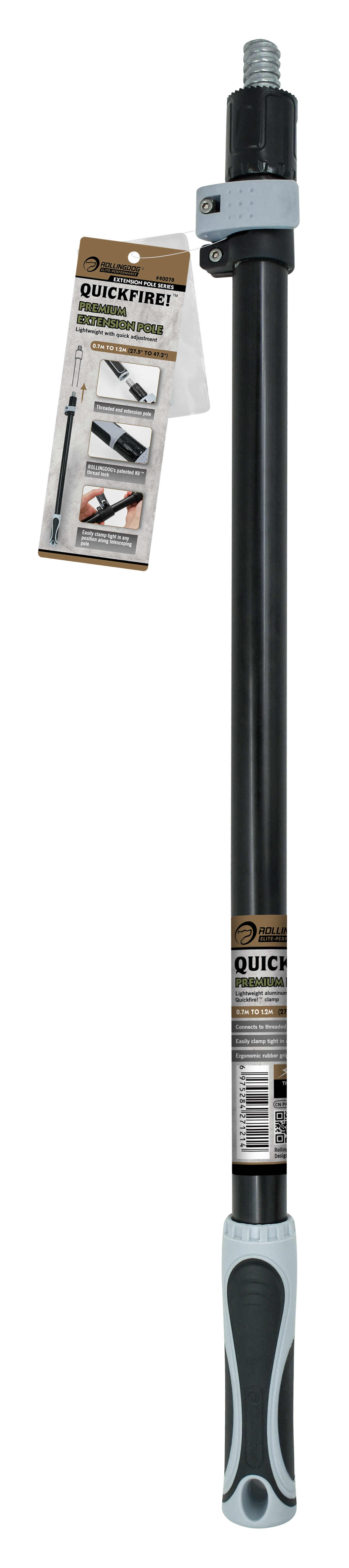 Connects to standard threaded extension poles including ROLLINGDOG models #40078 and #40079.