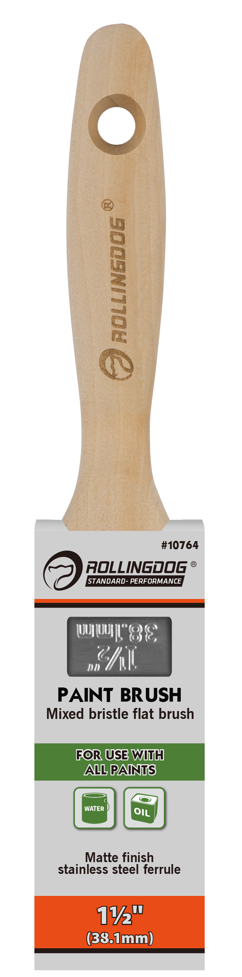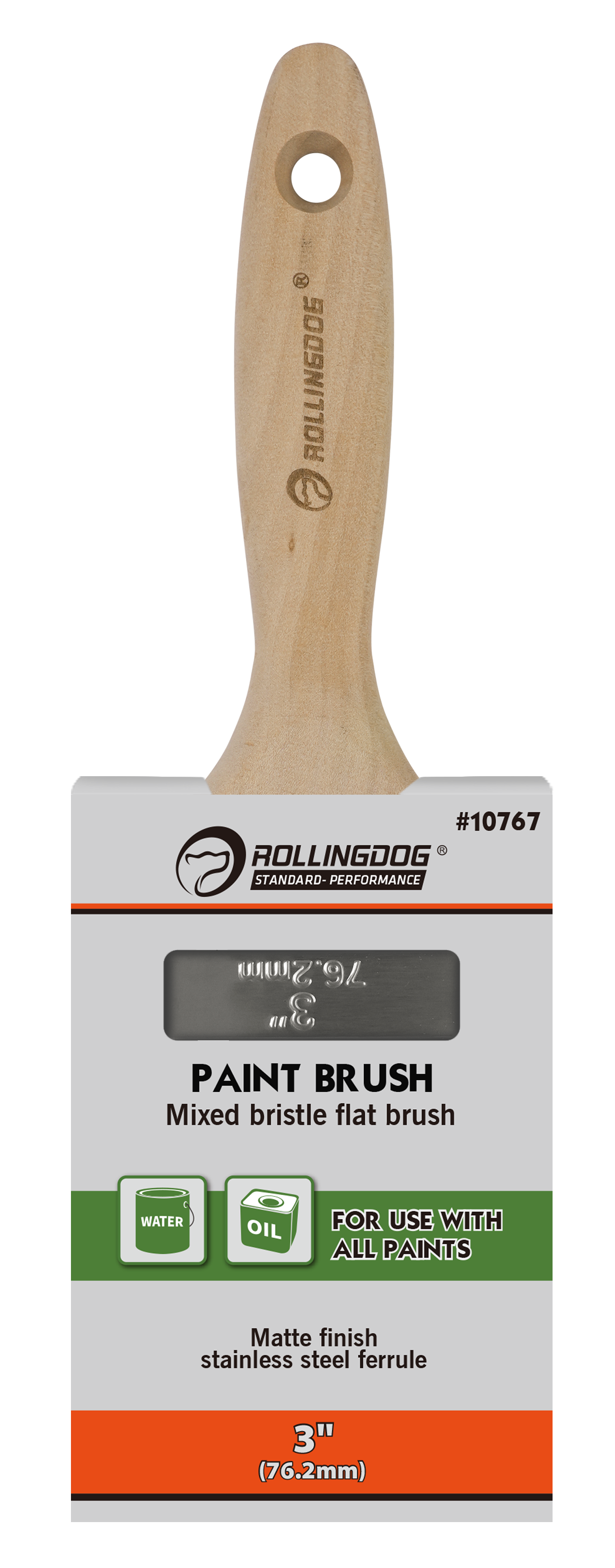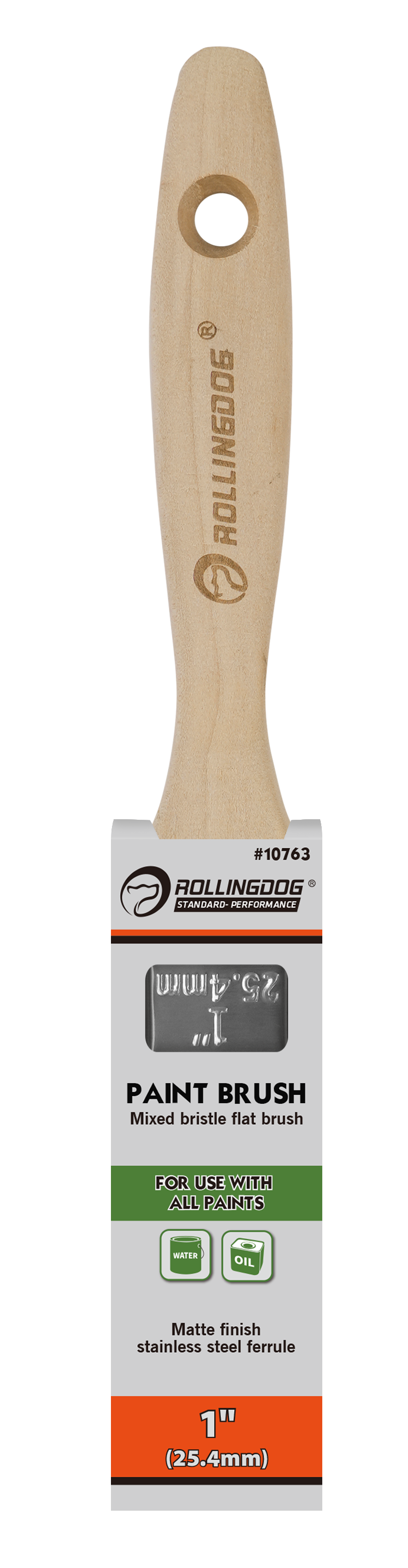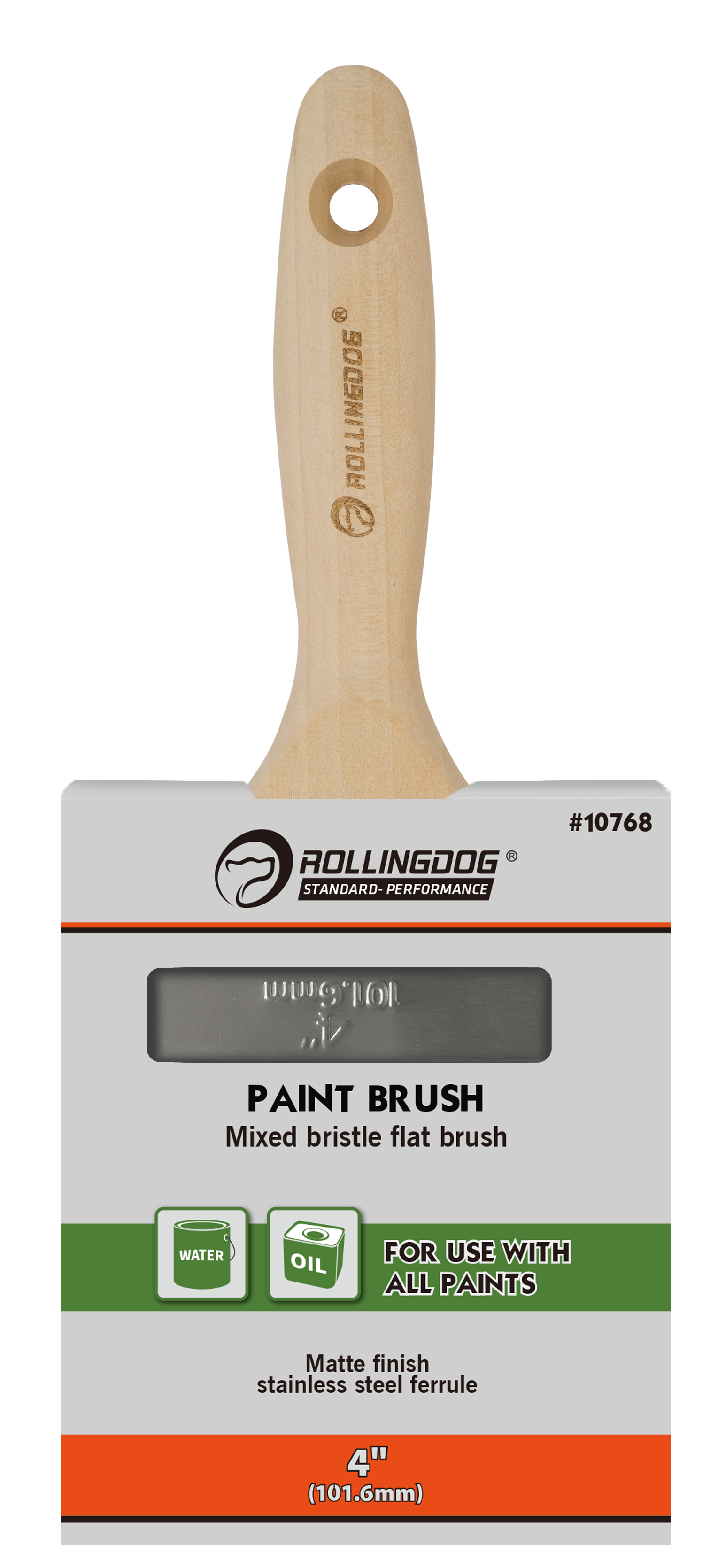 The ROLLINGDOG Mixed Bristle Flat Paint Brush is a versatile, professional-grade brush designed for smooth, controlled paint application across a wide range of projects. Built with mixed bristles and a matte finish stainless steel ferrule, this brush delivers balanced paint pickup, steady release, and long-lasting durability.