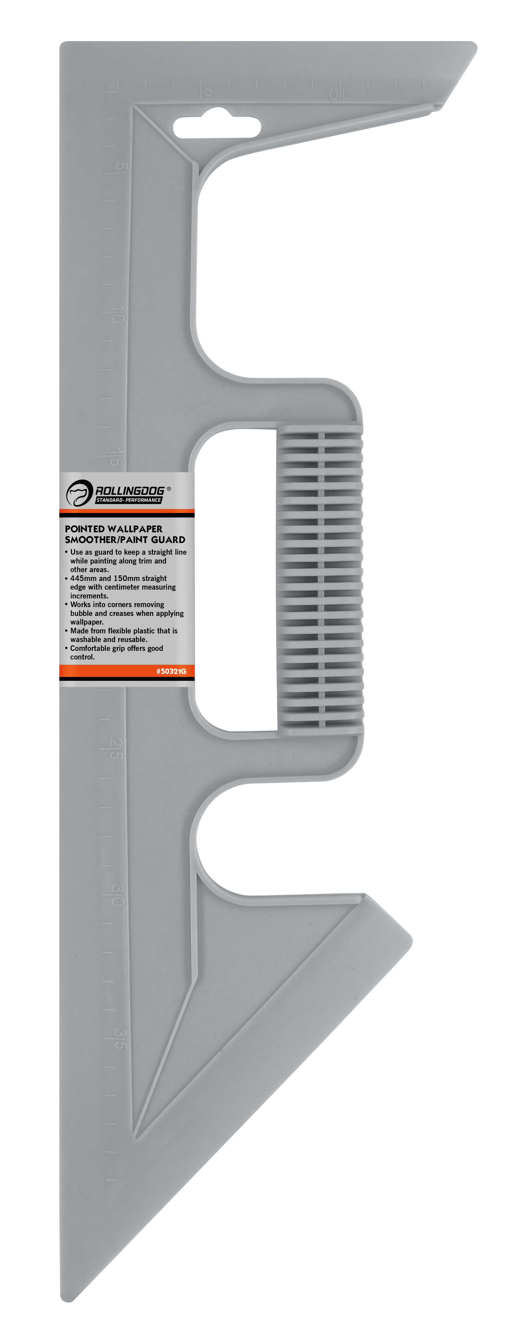 The ROLLINGDOG Wallpaper Smoothing Tool is a large-format finishing tool designed for professional wallpaper installation and surface smoothing. Measuring 17.5 inches x 6 inches (445mm x 152mm), this durable plastic tool features a center grip handle for control, tapered flexible edges for versatility, and a pointed tip for tight corners. A built-in 0–15.75 inch ruler (0–40cm) adds measuring convenience, while the stiff flex body helps eliminate bubbles, creases, and wrinkles efficiently.